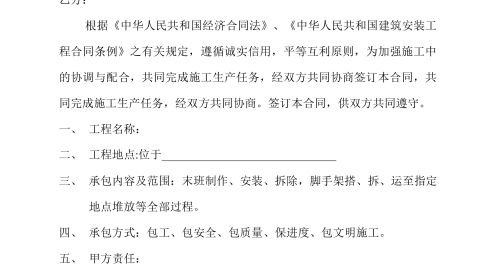 钢木瓦劳务合同2