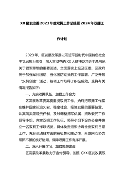 XX区发改委2023年度双拥工作总结暨2024年双拥工作计划