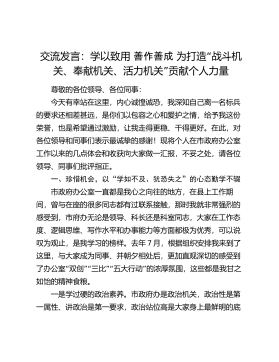 交流发言:学以致用善作善成为打造“战斗机关、奉献机关、活力机关”贡献个人力量