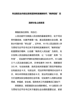 市法院在全市政法系统坚持和发展新时代“枫桥经验”交流研讨会上的发言