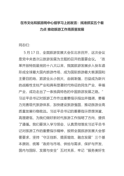 在市文化和旅游局中心组学习上的发言:找准抓实五个着力点 推动旅游工作高质量发展