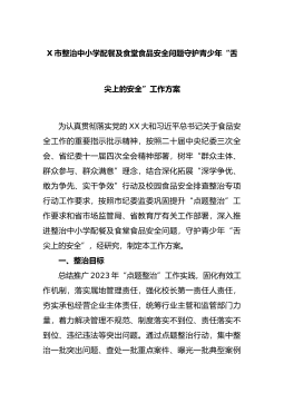 X市整治中小学配餐及食堂食品安全问题守护青少年“舌尖上的安全”工作方案
