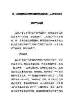 XX市万全区住房和城乡建设局关于深入开展群众身边腐败和作风问题保障性住房方面专项整治的实施方案为深入贯彻落实省委、省纪委监委和市委、市纪委监委关于整治群众身边腐败和作风问题的安排部署,根据市纪委和市监委印发的《关于深入整治群众身边腐败和作风问题的实施方案》张纪字〔2019〕14号)通知要求,为切实做好保障性住房分配不合理、不公开、违反政策规定等问题专项整治工作,坚决整治存在...