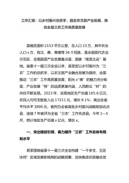 工作汇报:以乡村振兴总抓手,融合农文旅产业发展,推动全县三农工作高质量发展