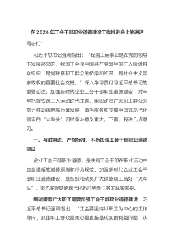 在2024年工会干部职业道德建设工作推进会上的讲话
