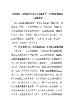 研讨发言:积极应对突发公共卫生事件,有力维护国家公共卫生安全
