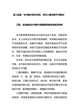 深入实施“乡村振兴百村示范、农村人居环境千村整治”工程,全面推进乡村振兴专题建言献策会发言材料乡村旅游是将传统农业中的农业生产活动、田园自然风光、乡土民俗文化与现代旅游度假、休闲娱乐相结合而产生的旅游方式。发展乡村旅游,有助于推动农村产业结构的优化和调整,有助于促进农民增收并改善生产生活条件,有利于通过优化农村地区人才资源结构,推动乡村经济、社会、环境和文化的可持续发展。近年来,我...