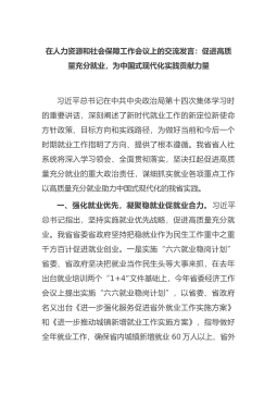 在人力资源和社会保障工作会议上的交流发言:促进高质量充分就业,为中国式现代化实践贡献力量