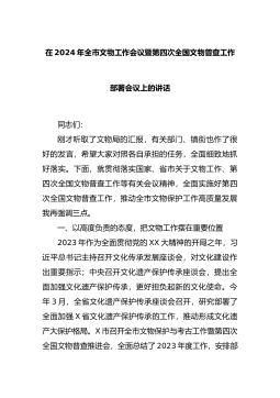 在2024年全市文物工作会议暨第四次全国文物普查工作部署会议上的讲话
