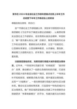 某市在2024年全省社会工作部年度重点任务上半年工作总结暨下半年工作推进会上的发言