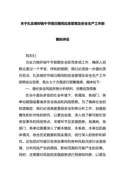 关于扎实做好端午节假日期间应急管理及安全生产工作部署的讲话