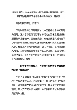 区财政局在2024年区委农村工作领导小组暨区委、区政府和美乡村建设工作领导小组全体会议上的发言