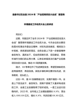 县委书记在全县2024年“产业招商项目大会战”暨营商环境建设工作动员大会上的讲话