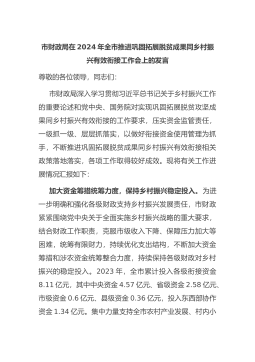 市财政局在2024年全市推进巩固拓展脱贫成果同乡村振兴有效衔接工作会上的发言