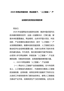 2025年两会专题党课:两会视角下,“人工智能+”产业发展与党员担当专题党课同志们:2025年全国两会在全面深化改革、推进中国式现代化的关键时期胜利召开,这是一次凝聚共识、汇聚力量、擘画未来的重要盛会。两会期间,众多关乎国计民生、科技创新、产业发展的议题成为焦点,其中“人工智能+”产业发展备受瞩目。随着科技的迅猛发展,人工智能已成为推动经济社会变革的重要力量,为各行业带来了前所