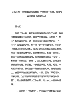 2025年一季度廉政党课讲稿:严明纪律干实事,风清气正浓氛围(退役军人)