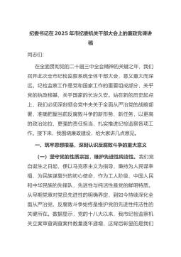 党组书记、主任在市发展改革委2025年党风廉政建设工作会暨警示教育会上的讲话同志们:在深入学习贯彻党的二十大和二十届二中、三中全会精神,认真落实二十届中央纪委四次全会部署的重要时刻,我们召开此次党风廉政建设工作会暨警示教育会,旨在总结过往、部署当下、展望未来,以坚定不移的决心和行动,深入推进我委党风廉政建设和反腐败斗争。过去一年,我们在党的领导下,以习近平新时代中国特色社会主