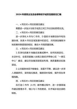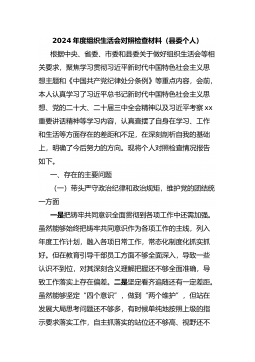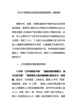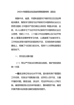 2024年度民政局民主生活会、组织生活会“四个带头”对照检查材料按照民主生活会的要求,我认真学习并深入领会习近平新时代中国特色社会主义思想,全面把握习近平总书记关于民政工作的重要论述,仔细研读《党章》、《关于新形势下党内政治生活的若干准则》、《中国共产党党内监督条例》,以及党中央关于民主生活会的相关要求。通过一系列学习,我进一步夯实了思想基础,提高了政治觉悟,增强了党性修养,促
