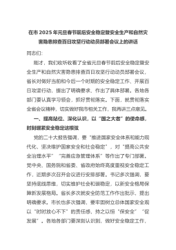 在市2025年元旦春节前后安全稳定暨安全生产和自然灾害隐患排查百日攻坚行动动员部署会议上的讲话