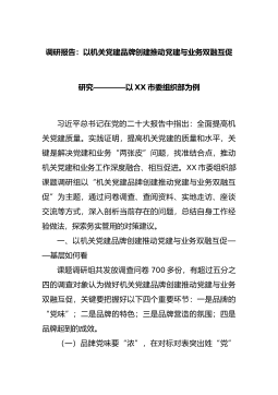 调研报告:以机关党建品牌创建推动党建与业务双融互促研究————以XX市委组织部为例