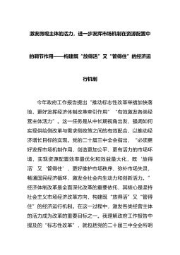 激发微观主体的活力,进一步发挥市场机制在资源配置中的调节作用——构建既“放得活”又“管得住”的经济运行机制