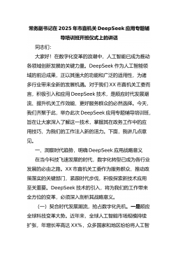 常务副书记在2025年市直机关DeepSeek应用专题辅导培训班开班仪式上的讲话