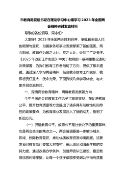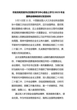 市发改局党组书记在理论学习中心组会上学习2025年全国两会精神的研讨发言材料