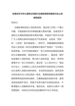 在理论学习中心组树立和践行正确政绩观专题研讨会上的辅导报告同志们:正确处理党性和人民性的关系,是全党工作的一个重大问题;它既是意识形态领域的重大原则问题,也是党员干部树立正确政绩观的根本原则问题。中国共产党作为代表广大人民群众根本利益的无产阶级政党,决定其“党性”和“人民性”绝对高度统一。新时代,准确理解和把握党性和人民性统一的内在逻辑是中国共产党践行“为中国人民谋幸福,为中华民族谋复兴”初心和使...