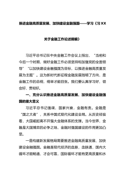 推进金融高质量发展、加快建设金融强国——学习《习XX关于金融工作论述摘编》