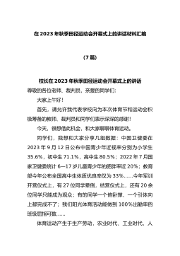 (7篇)校领导在2023年秋季田径运动会开幕式上的讲话材料汇编