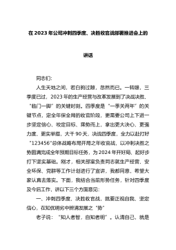 在2023年公司冲刺四季度、决胜收官战部署推进会上的讲话
