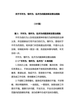 (10篇)关于不作为、慢作为、乱作为问题清单及整治措施