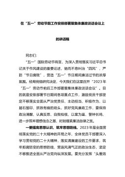 人民政府常务副市长在全市“五一”假期安全防范工作会上的讲话同志们:再过几天就进入“五一”小长假了,这是疫情防控措施完全调整之后的第一个长假期,势必会引燃压抑已久的出游热情。全市各地将迎来一个人流、车流、物流集中的峰值期,同时,各类致灾因素将显著增加,抓好各项安全防范工作至关重要。为贯彻落实全国、省关于“五一”期间相关工作安排,经市政府党组同意,专门召开今天的会议,安排部署几个方面...
