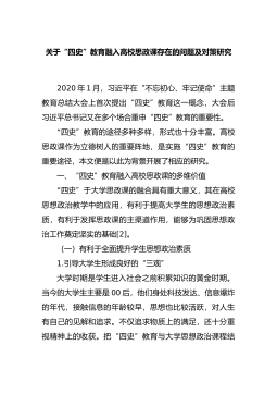 关于“四史”教育融入高校思政课存在的问题及对策研究2020年1月,习近平在“不忘初心、牢记使命”主题教育总结大会上首次提出“四史”教育这一概念,大会后习近平总书记又在多个场合重申“四史”教育的重要性。“四史”教育的途径多种多样,形式也十分丰富。高校思政课作为立德树人的重要阵地,是实施“四史”教育的重要途径,本文便是以此为背景开展了相应的研究。一、“四史”教育融入高校思政课的多维价值“四史”于大学...