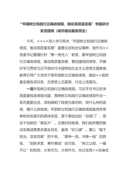 “牢固树立和践行正确政绩观,推动高质量发展”专题研讨发言提纲(城市建设服务民生)