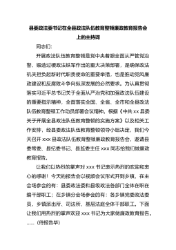 县委政法委书记在全县政法队伍教育整顿廉政教育报告会上的主持词