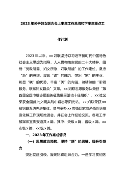 2023年关于妇女联合会上半年工作总结和下半年重点工作计划