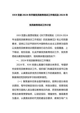 XXX 党委 2024 年开展党员教育培训工作情况及 2024 年党员教育培训工作计划