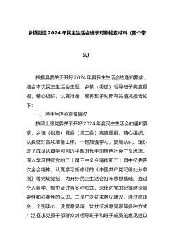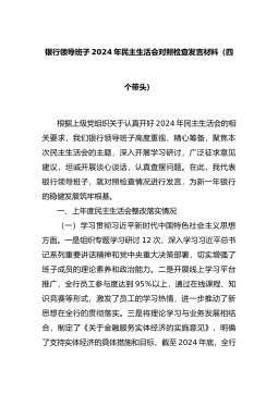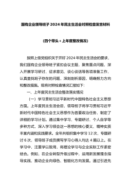 国有企业领导班子2024年民主生活会对照检查发言材料(四个带头+上年度整改情况)