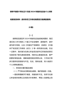 (6篇)领导干部四个带头五个方面 2024 年组织生活会个人对照检查发言材料 (意识形态工作责任制落实方面典型案例)