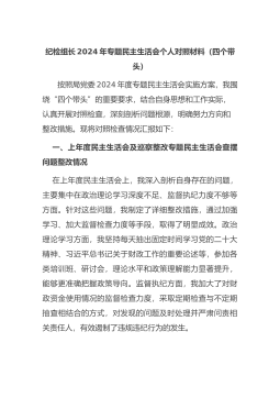 四个带头生活会素材汇编(适合拼凑材料及简单的民主生活会、组织生活会使用)(9篇)书记2024年民主生活会个人对照检查材料(四个带头)按照2024年度民主生活会的相关要求,会前本人积极投身于个人自学与集体学习活动,深入学习*总书记的重要讲话及指示精神,对党章、《条例》等党内法规进行了认真研读,深刻领会全面深化改革所蕴含的重大意义。与此同时,与班子成员及广大干部展开了深入