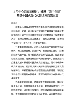 11月中心组交流研讨:推进“四个创新” 开辟中国式现代化新境界交流发言