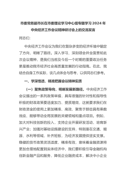 市委常务副市长在市委理论学习中心组专题学习2024年中央经济工作会议精神研讨会上的交流发言