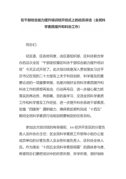 在干部综合能力提升培训班开班式上的动员讲话(全民科学素质提升和科协工作)