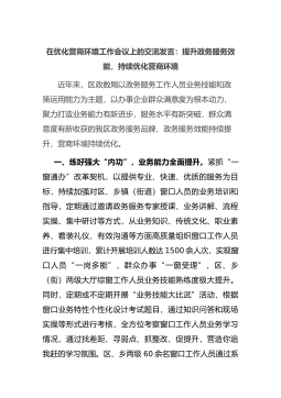在优化营商环境工作会议上的交流发言:提升政务服务效能,持续优化营商环境