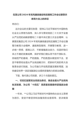 在某公司2024年党风廉政建设和反腐败工作会议暨警示教育大会上的讲话