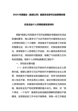 2024年度国企(能源公司)基层党支部书记巡察整改组织生活会个人对照检查发言材料
