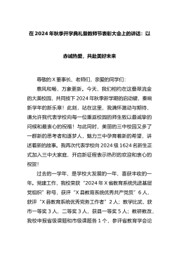 在2024年秋季开学典礼暨教师节表彰大会上的讲话:以赤诚热爱,共赴美好未来