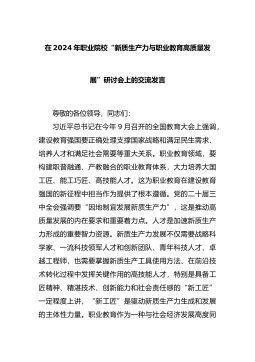 在2024年职业院校“新质生产力与职业教育高质量发展”研讨会上的交流发言