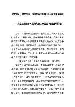 坚定信心、瞄定目标、持续发力推动XXX公司高质量发展——央企总经理学习贯彻党的二十届三中全会心得体会